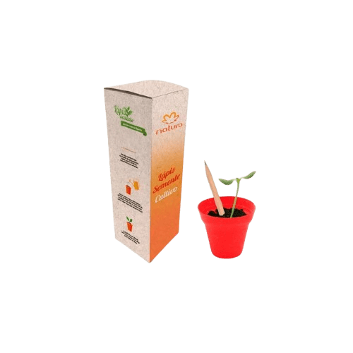 Primeiramente, o kit contém lápis semente, vasinho de fibra de madeira e substrato preparado para germinação rápida. Dessa forma, o participante recebe todos os itens necessários para iniciar o plantio imediatamente.